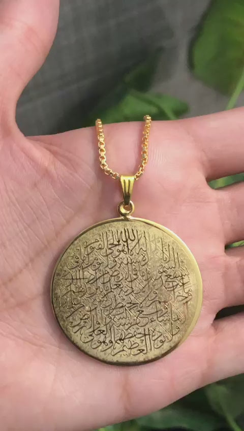 Carry the powerful words of Ayatul Kursi close to your heart with this beautifully crafted Round Pendant Chain. A timeless piece of Islamic jewelry, it symbolizes faith, protection, and spiritual strength.